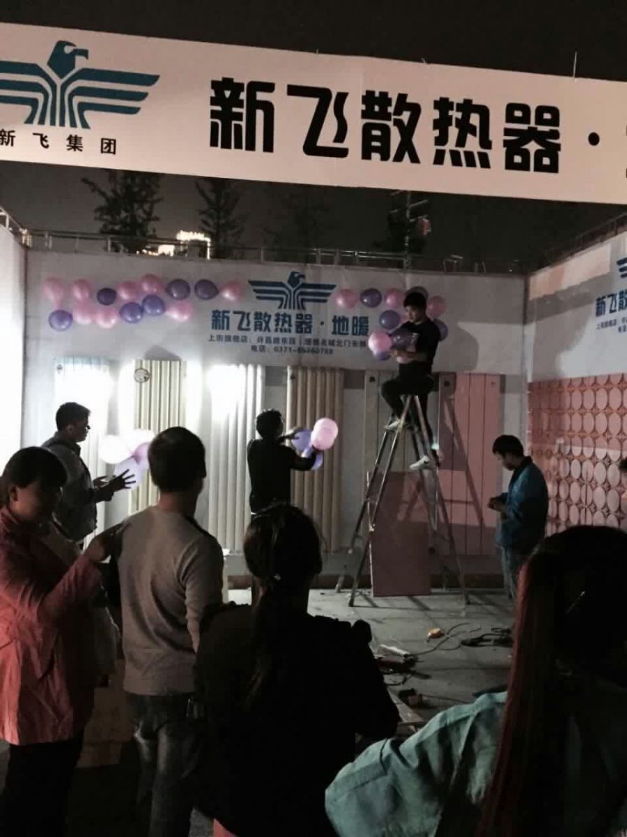 為響應公司十一優惠活動,鄭州市上街區代理商葛經理于9月12日參加了“家合聯盟省錢大行動”,11日晚上工作人員趁著月色趕工搭建我們的產品展位,12日工作人員熱情洋溢的推廣新飛產品,在大家的共同努力下取得了一天簽訂56單的好成績,感謝工作人員的辛勤付出,感謝葛經理將公司政策很好的推廣,感謝廣大業主的支持和信賴!