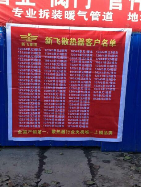 鶴壁市山城區礦務局家屬院小區集中供暖改造急迫,新飛散熱器駐鶴壁業務人員在當地代理商的強有力支持下,在廣大同仁的共同努力下,我們簽單過百戶,感謝廣大業主的信任和支持!