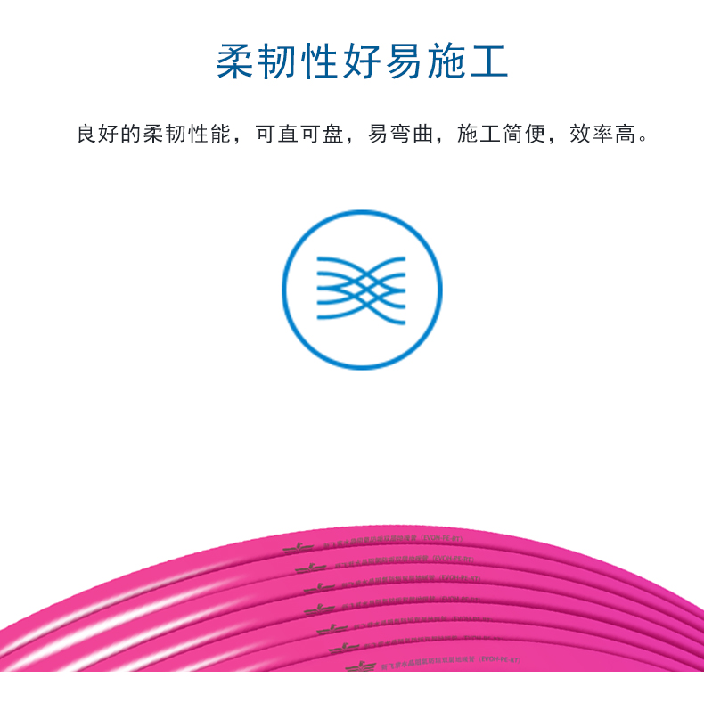 3、柔韌性強:便于施工,EVOH地暖管耐低溫,在零下七十度也可以柔順施工;
